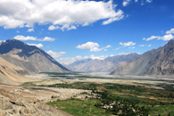 누브라 밸리(Nubra Valley)는 레의 남쪽에 위치하며 북쪽으로는 카라코람 (Karakoram) 산맥을, 남쪽으로 라다크 (Ladakh) 산맥을 끼고 있다. 인더스 강이 누브라 밸리를 감싸고 있어, 여러 계곡들 중에서도 가장 비옥하고 풍요로운 곳으로 알려져 있다. 레 (Leh)에서 누브라로 이동 시 해발 5606m 의 카르둥 라 (Khardong La)를 지나야 하는데, 이는 세계에서 가장 높은 자동차 도로이다. 카르둥 라 (Khardong La) 꼭대기에서는 인더스 계곡 너머로 끝없이 펼쳐진 잔스카르(Zanskar) 산맥의 봉우리들을 감상 할 수 있다. |