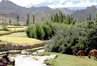 레(Leh)에서 약 10km 정도 떨어진 지점으로, 인더스 강가에 자리잡고 있으며 이 곳에는 약 1,000년 이상의 역사를 지닌 곰파가 있다. 곰파의 한 쪽 언덕 위에는 1년에 딱 한번 얼굴을 비춘다는 여신 칼리 (Kali)를 모시는 마하칼리 (Mahakali)신전이 있어서, 많은 여행객들의 이목이 집중되고 있다. |
